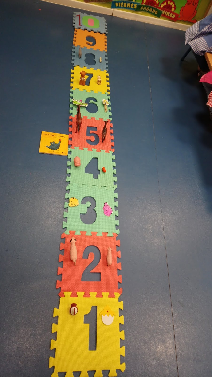 Como los animales que van saliendo van por parejas, los colocamos en la recta numérica del suelo para el conteo de 2 en 2.
