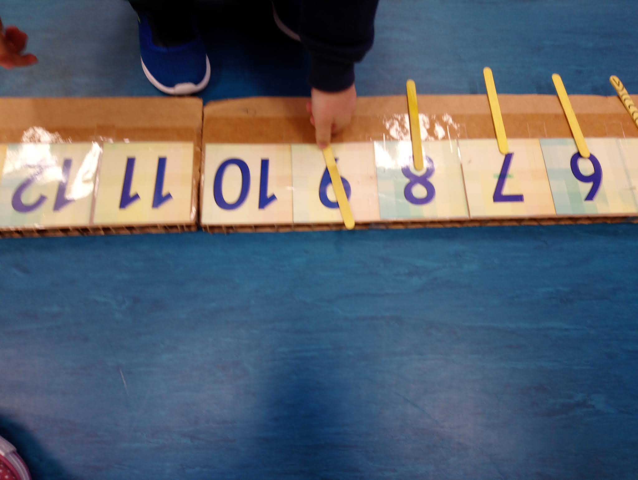 Cada niño/a tiene un palito y lo va colocando sobre la recta numérica indicando el nombre del número que le corresponde.