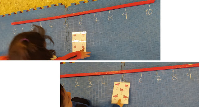 La baraja de flamencos y los dados nos sirven de recurso para el desarrollo de la FASE 4 DE LA TABLA DE LA SUMA.